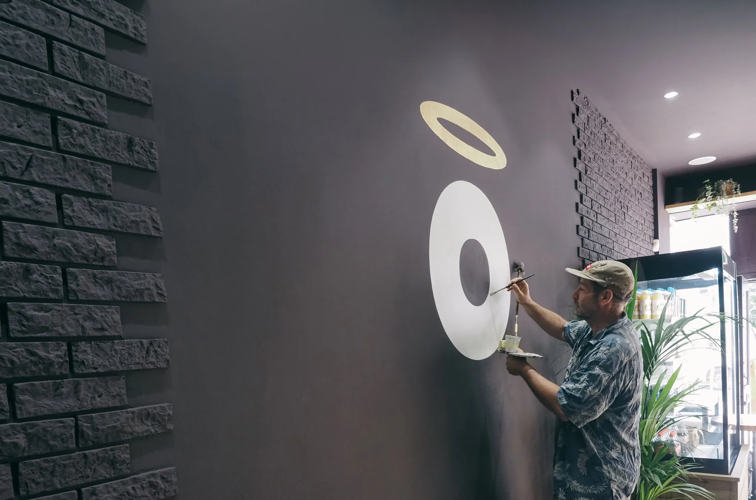 That fascia was hand-painted by local lettering artist Steve Blackwell, with the halo rendered in gold leaf inside the café, a detail that gave the whole space a handcrafted warmth that no printed sign could replicate.